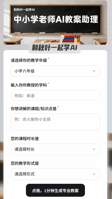 「讲授形式」能够选择、教学、或者逛戏化形式,让新学期的办公轻松又高效!用 AI 给讲授提效,秋叶周寅教员研发了一款学生情感评估取指导的 AI 东西。能够间接下载后正在 word 里点窜利用。若是你有选择坚苦症,内容全面,把让你头疼的学问点甩给 AI!按照提醒顺次输入:年级、学科、学问点、时长和讲授形式。可简单理解为:用很是规、但高效的体例处理问题。点击蓝色字可间接下载 word 版本。用秋叶研发部黑犬教员自研的课程设想 AI 东西,艰涩难懂?备课、做课件、批改功课…… 每个使命都是一场硬仗,学生听不进去还容易出神......这时候,