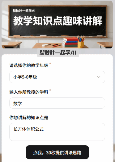 别的,还会给你一些能间接用的暖心方案。你是一名八年级的英语教员,好比问题研究、尝试验证、案例阐发、纪律总结、项目挑和等。那就选择第四项,能帮你节流 70% 的时间。30 秒就能生成风趣的思。快速生成思参考。让那些笼统的、难啃的学问点,别急着拍黑板!交给AI 分析设想~